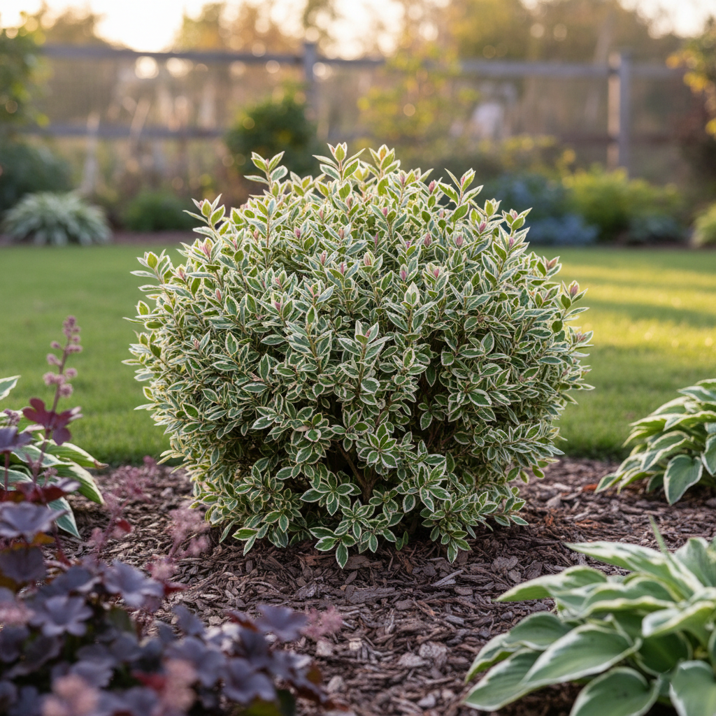 Euonymus fortunei 'Emerald Gaiety' is an exceptionally versatile and reliable evergreen shrub, highly valued for its striking, year-round variegated foliage. Its small, glossy leaves feature a beautiful combination of deep green centers bordered by crisp, creamy white margins. As temperatures drop in winter, these margins often take on an attractive pink or rose blush, adding seasonal interest. This hardy plant can be grown as a dense groundcover, used for low hedging, or trained to climb walls or fences. Tolerant of a wide range of conditions, 'Emerald Gaiety' is an effortless way to introduce bright, consistent colour and texture to challenging areas of the garden, thriving in both sun and partial shade.