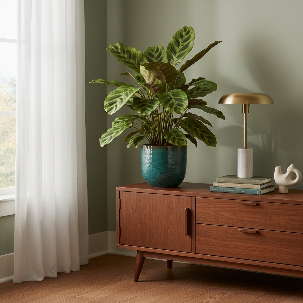 Step into a world of botanical artistry with the Calathea Makoyana, a true masterpiece of nature. This exquisite plant boasts large, rounded leaves adorned with captivating, intricate patterns of light and dark green stripes, giving it a luxurious and sophisticated appearance. Each leaf is a testament to natural design, making it a focal point in any room. Like other Calatheas, the Makoyana exhibits 'nyctinasty' where its leaves fold upwards at night and unfurl during the day, a fascinating behavior to observe. Ideal for those who appreciate unique foliage and are ready to provide consistent humidity and bright, indirect light. The Calathea Makoyana is more than just a plant; it's a living piece of art that brings elegance and a tranquil ambiance to your home.